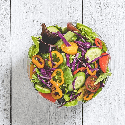 Chopped romaine lettuce, blended & shaved Parmesan, Asiago, and Romano cheese with a creamy Caesar dressing. Farm fresh