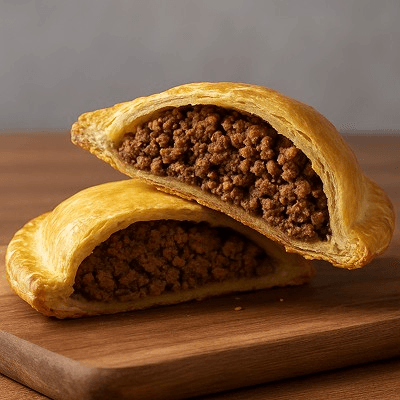 A flaky, golden pastry filled with savory seasoned meat and Caribbean spices, baked to a crisp finish for a bold, authentic island flavor.